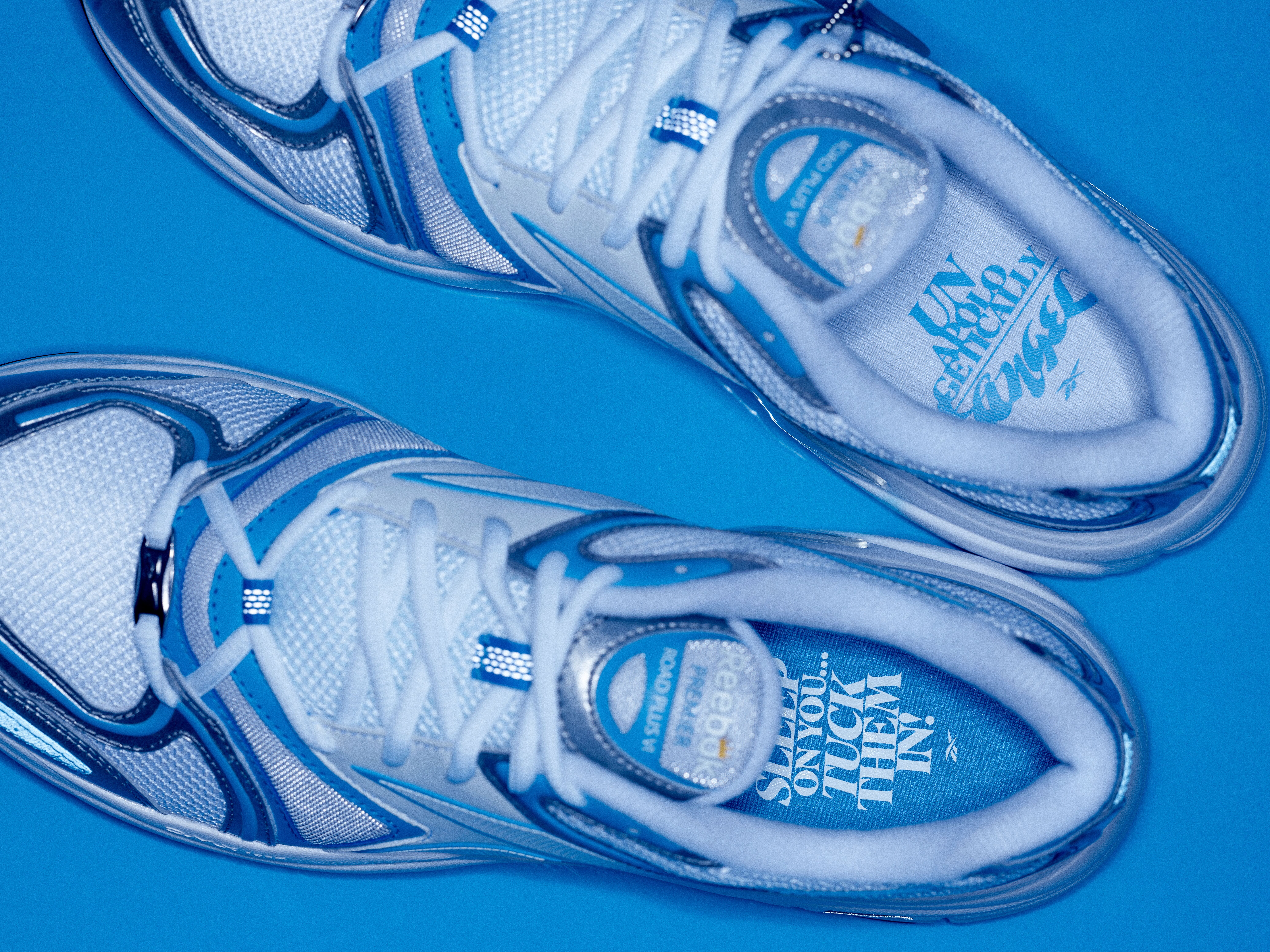The Reebok by Angel collection features a bold, icy color palette featuring "Always Blue" and "Silver Chrome," with expressive design details that complement Reese's dynamic style. The collaboration includes three footwear styles, the Premier Road VI, BB 4000 II, and Classic Leather, alongside new fits such as the black Angel Graphic Tee, the blue and black Angel Vector Track Jacket, and the Angel Lux Bodysuit. The Chicago Sky forward worked closely with Reebok to give these items the Reese signature touch in the form of her mantra "When they sleep on you … tuck them in!" etched into the sneakers' insoles and on T-shirts.